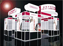 其特點(diǎn)是型材和木質(zhì)結(jié)構(gòu)相結(jié)合。設(shè)計(jì)旨在以展具的形式美和材質(zhì)美來(lái)襯托產(chǎn)品。其效果新穎美觀。 Booth set up with aluminium alloy frame material and wood;Both advantages of the two kinds of materials are jointly taken to meet the edmands of the clients. |